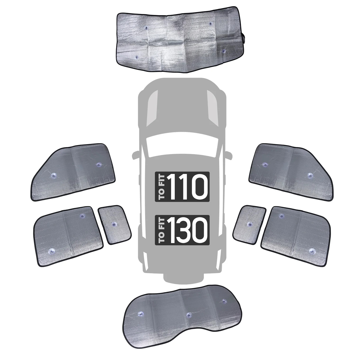 8 zonneschermen (voor zij- en achterruiten)