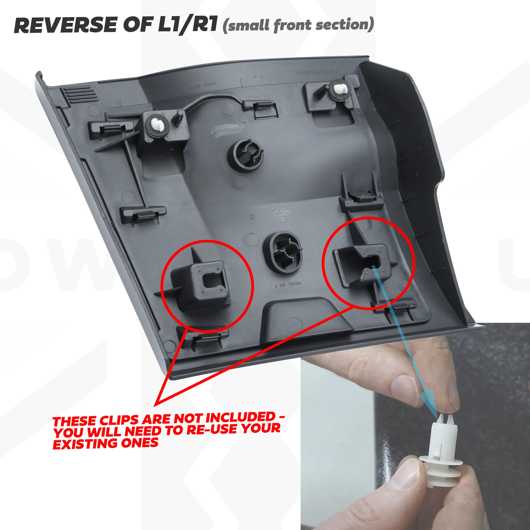 • Compleet met nieuw bevestigingsmateriaal: clips en voorgeïnstalleerde 3M-tape
