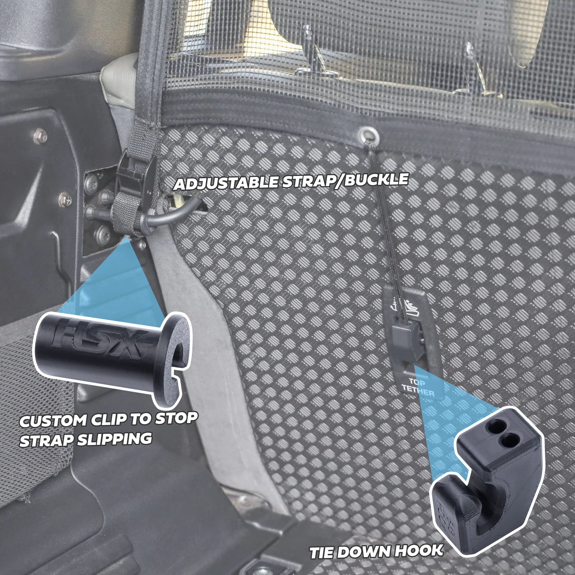 Perfect voor het vervoeren van bagage, huisdieren of losse voorwerpen die anders kunnen verschuiven tijdens het rijden. Het net wordt bevestigd achter de tweede zitrij en blijft dankzij het slimme ontwerp stevig op zijn plaats – zonder gerammel of gewiebel.